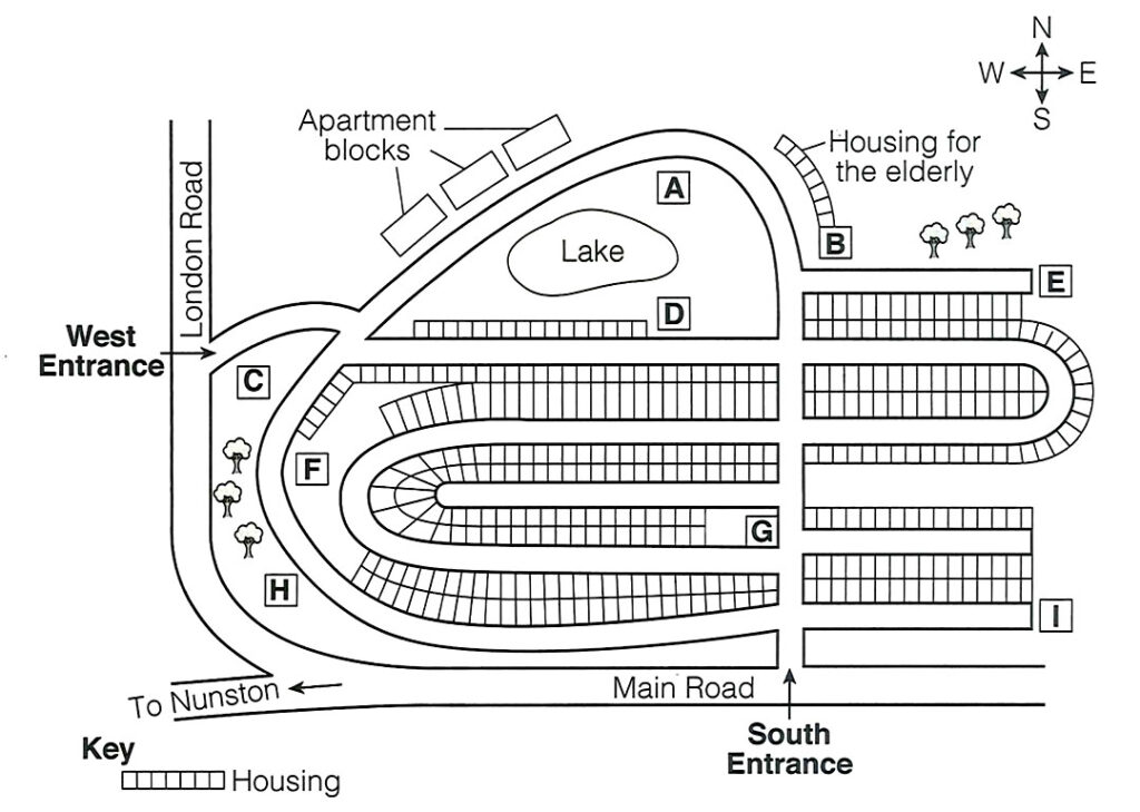 I’ll start by giving you a brief overview of our plans for the development. So one thing I’m sure you’ll want to know is why we’ve selected this particular site for a housing development. At present it’s being used for farming, like much of the land around Nunston. But because of the new industrial centre in Nunston, there’s a lot of demand for housing for employees in the region, as many employees are having to commute long distances at present. Of course, there’s also the fact that we have an international airport just 20 minutes’ drive away, but although that’s certainly convenient, it wasn’t one of our major criteria for choosing the site. We were more interested in the fact that there’s an excellent hospital just 15 kilometres away, and a large secondary school even closer than that. One drawback to the site is that it’s on quite a steep slope, but we’ve taken account of that in our planning so it shouldn’t be a major problem. Q11/12