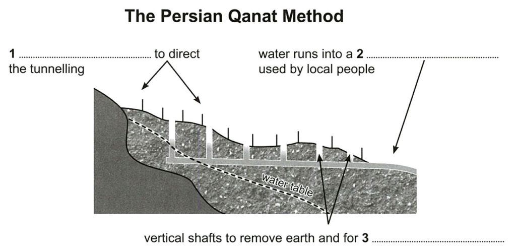 The Persians, who lived in present-day Iran, were one of the first civilizations to build tunnels that provided a reliable supply of water to human settlements in dry areas. In the early first millennium BCE, they introduced the qanat method of tunnel construction, which consisted of placing posts over a hill in a straight line, to ensure that the tunnel kept to its route, and then digging vertical shafts down into the ground at regular intervals. Underground, workers removed the earth from between the ends of the shafts, creating a tunnel. The excavated soil was taken up to the surface using the shafts, which also provided ventilation during the work. Once the tunnel was completed, it allowed water to flow from the top of a hillside down towards a canal, which supplied water for human use. Remarkably, some qanats built by the Persians 2,700 years ago are still in use today.