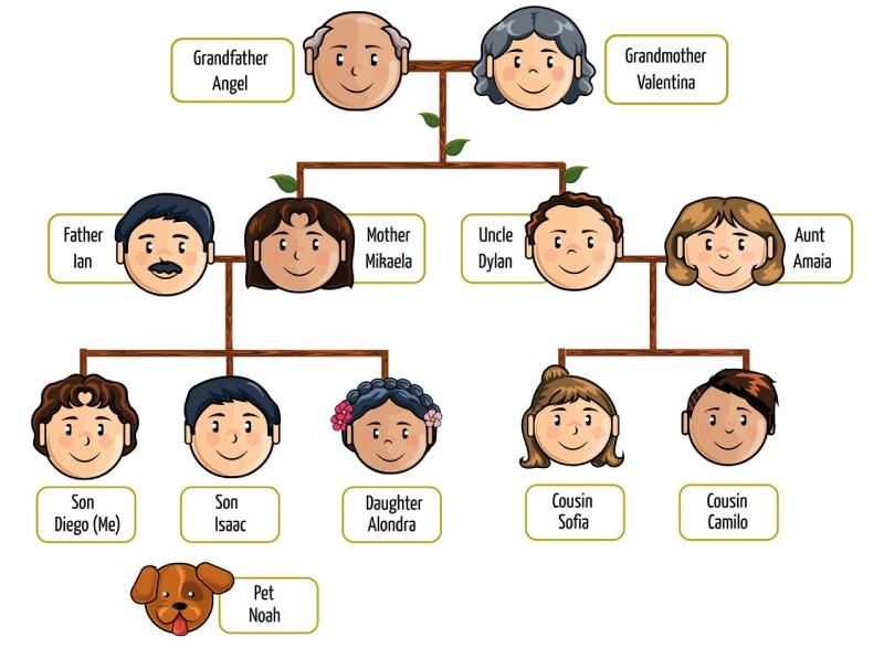 Gia phả thường thấy của một gia đình Các thành viên trong gia đình là những từ vựng IELTS chủ đề Family rất thông dụng