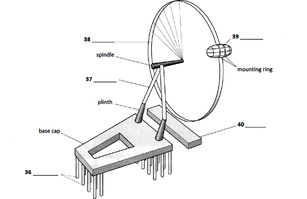 So, how is that great wheel held up? How did it get there? The starting point was, of course, the ground, and while parts of the wheel itself were still being constructed in various countries, tension piles (Q36) were being driven into the ground beside the River Thames. This was the first step, and once these were securely in place, a base cap was installed over them as a kind of lock, with two giant blimps pointing up, onto which a frame was attached, like a giant letter. The wheel was supported on huge A-frame (Q37) legs, made up of 2,200 tonnes of concrete on 44 concrete piles set 33 meters deep in the earth. All this took many months and incredible effort, but meant that the spindle could be installed, around which the great wheel would turn. The spindle itself was too large to cast as a single piece so instead was produced in eight smaller sections. Now the project really was in business, and the vast rim (Q38) with spokes like an outsized bicycle wheel could be brought in. 64 spoke cables, which are similar to bicycle spokes, hold the rim tight to the central spindle.