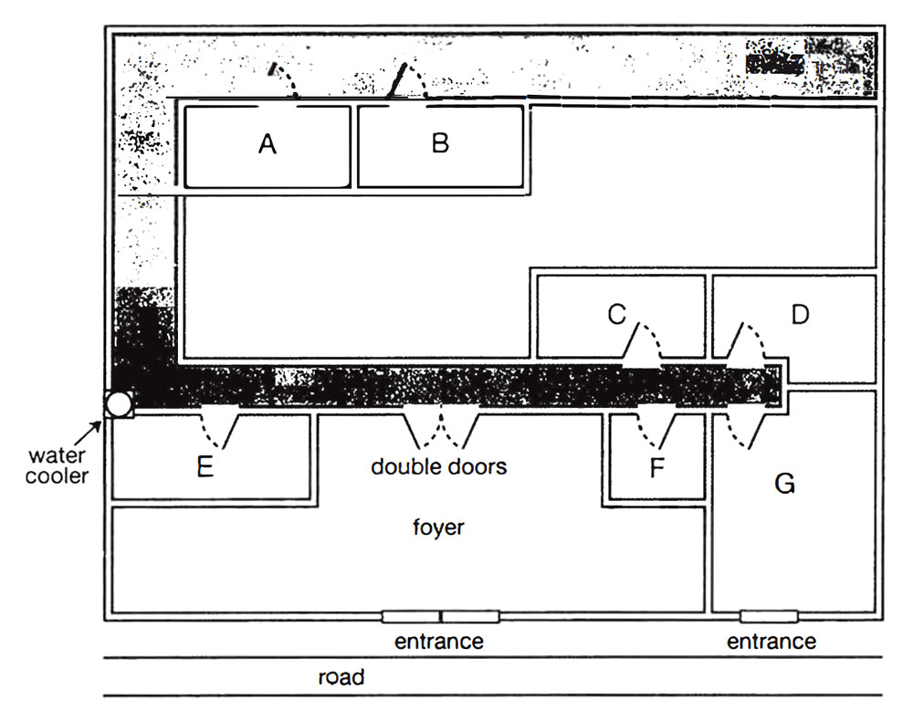 For the theatre manager’s office, you go across the foyer and through the double doors, turn right, and it’s the room at the end of the corridor, with the door on the left. (Q18)