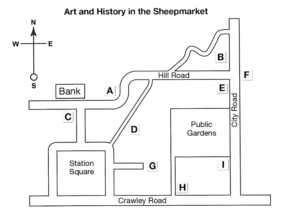 The Sheepmarket is one of the main centres for art and history in the whole of the country. If you look at our map, you’ll see some of the main attractions there. Most visitors start from Crawley Road, at the bottom of the map. The Reynolds House is one of the oldest houses in the city, and is open to the public. It’s on the north side of Crawley Road, next to the footpath that leads to the public gardens. (Q15)