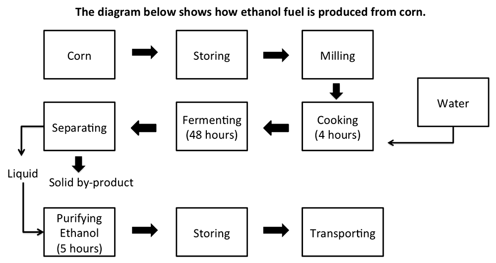 – Paraphrase paragraph: diagram>flow chart; shows>illustrates; how ethanol fuel is produced>the process of making