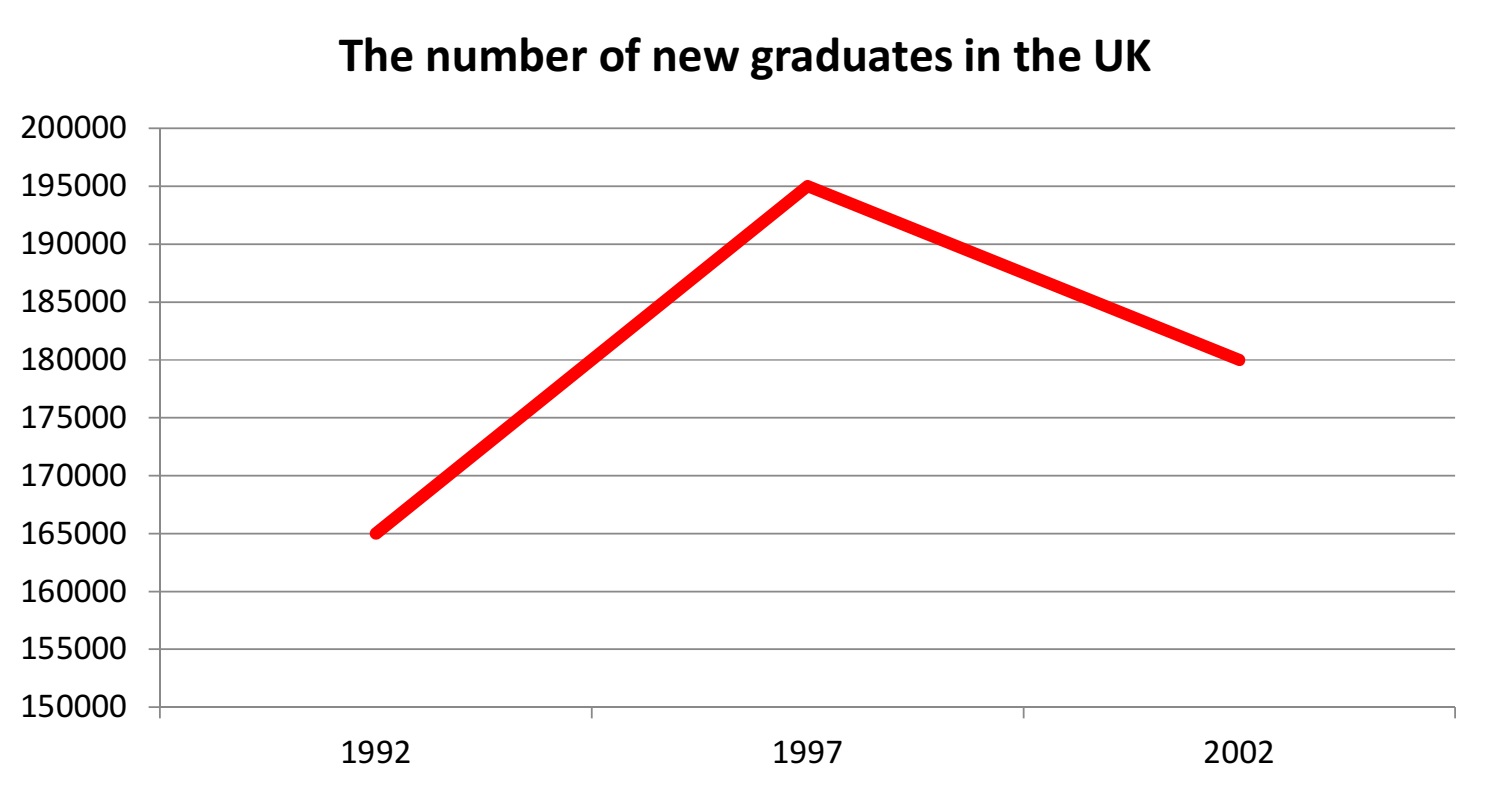 The graph and chart below give information about the number of new graduates and their employment in the UK from 1992 to 2002.