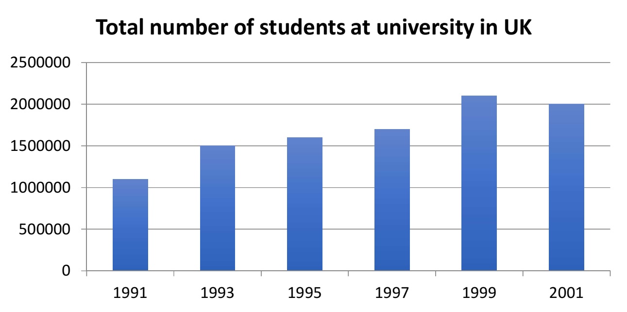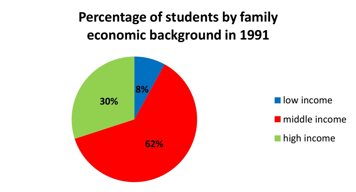 Overall, in 1991 the majority of undergraduates came from middle-income families. Also, in contrast to the increased number of university students, government spending became less and less toward the end of the period.